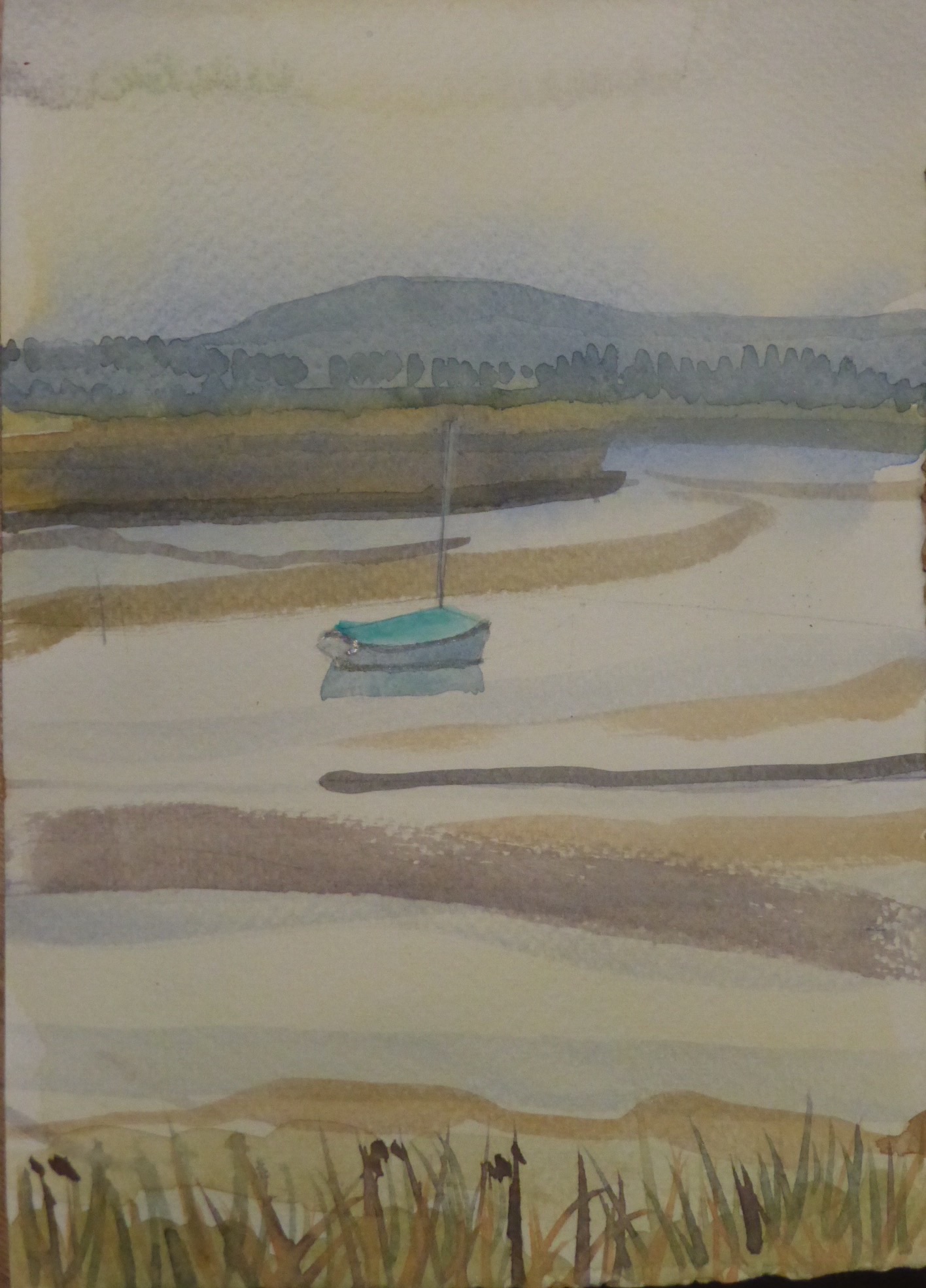 Oare Creek with blue-clad dinghy
