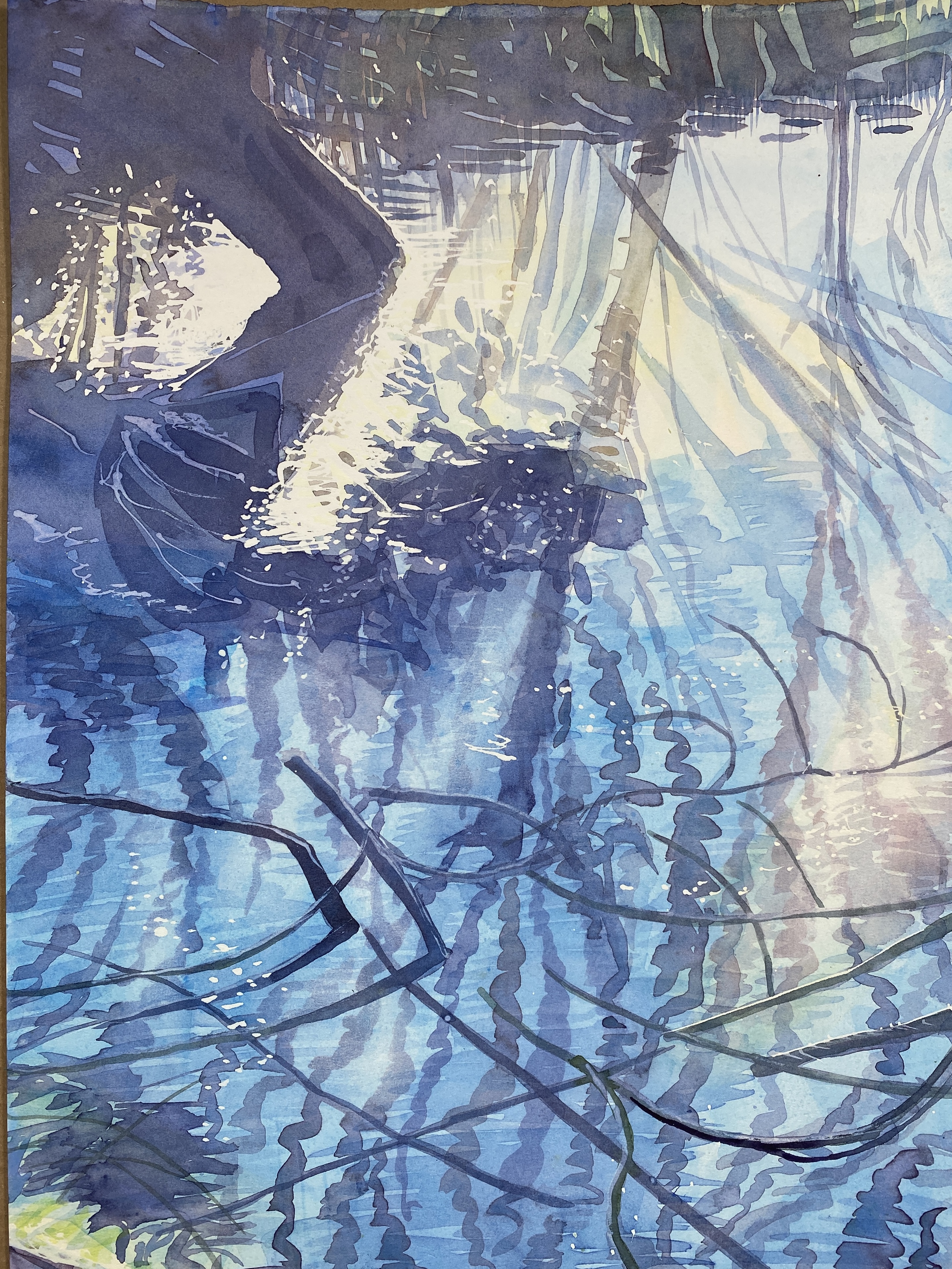 Sunsparks on Thames, A3 watercolour